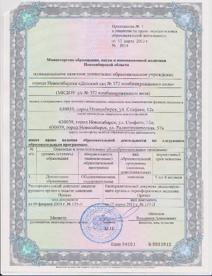 Серия 54 ЛО1 №0000401 № 8014 от 12 марта 2013г. Лицензия предоставлена бессрочно